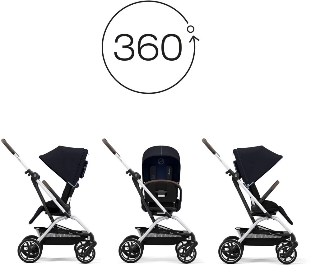 Mit einer Hand lässt sich die Sitzeinheit schnell und einfach um 360 Grad mit der integrierten Beinstütze drehen, so dass Dein Kind die Wahl hat, ob es nach vorne oder in die Richtung der Eltern blickt.